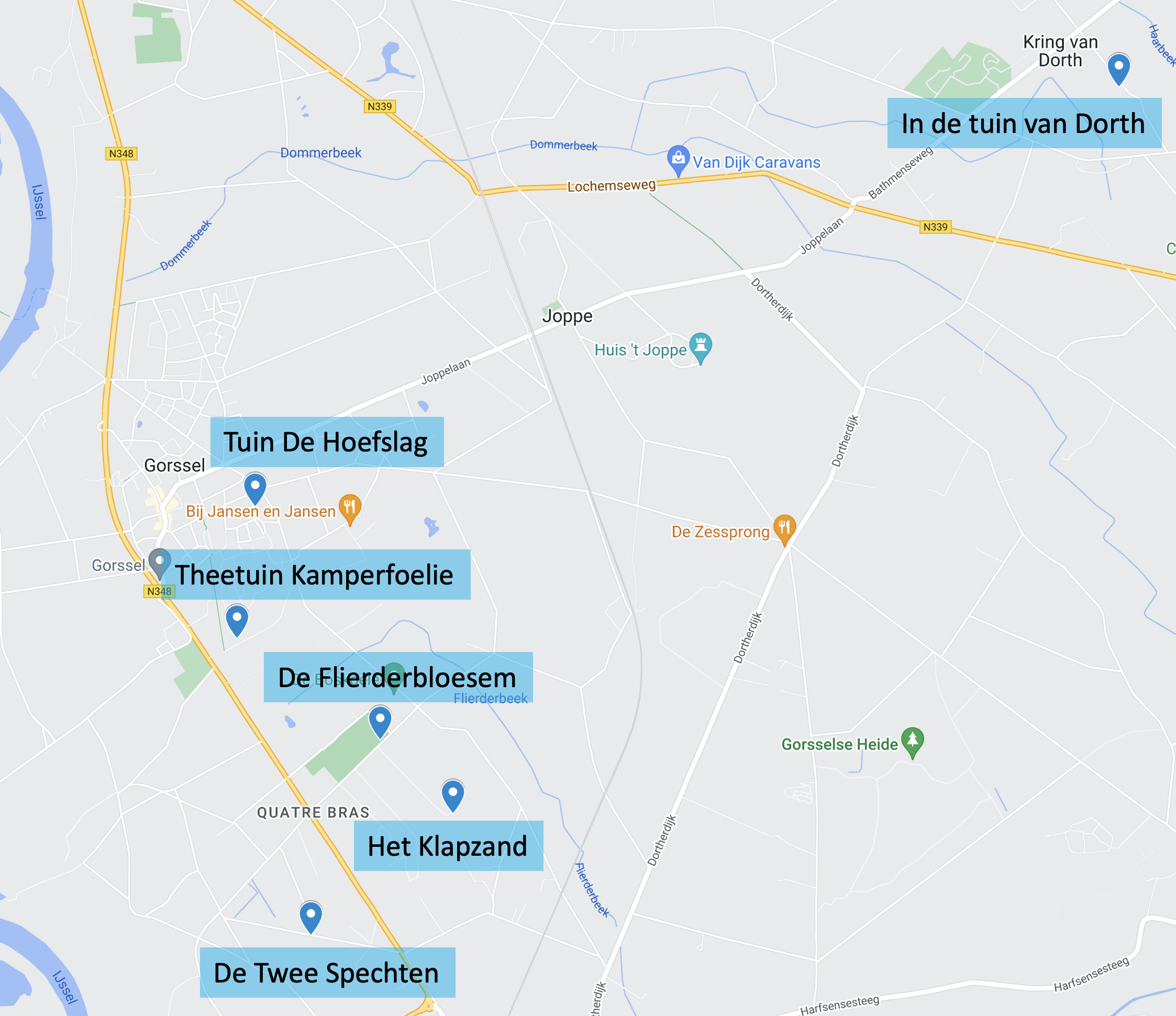 Alle tuinen liggen in of bij Gorssel, gelegen tussen Deventer en Zutphen